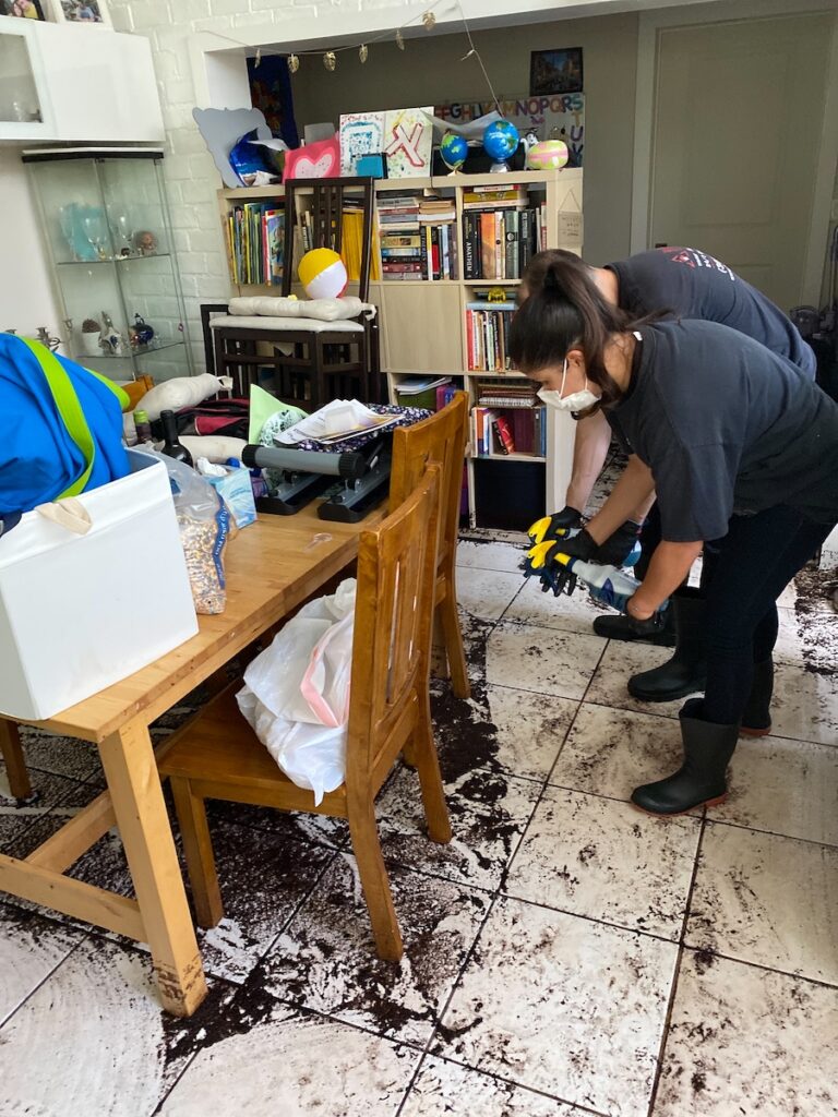 Once we determined a course of action, we got to work. First, we conducted a thorough water extraction, ensuring we removed all the water from the affected areas. Because of the water’s source and the contaminants that were in the water, our technicians also conducted sewage cleanup to eliminate any bacteria present. Then, our crew sorted the client’s belongings to see what was salvageable. All items deemed salvageable were cleaned, boxed, and inventoried in our PuroClean process known as contents pack-out.