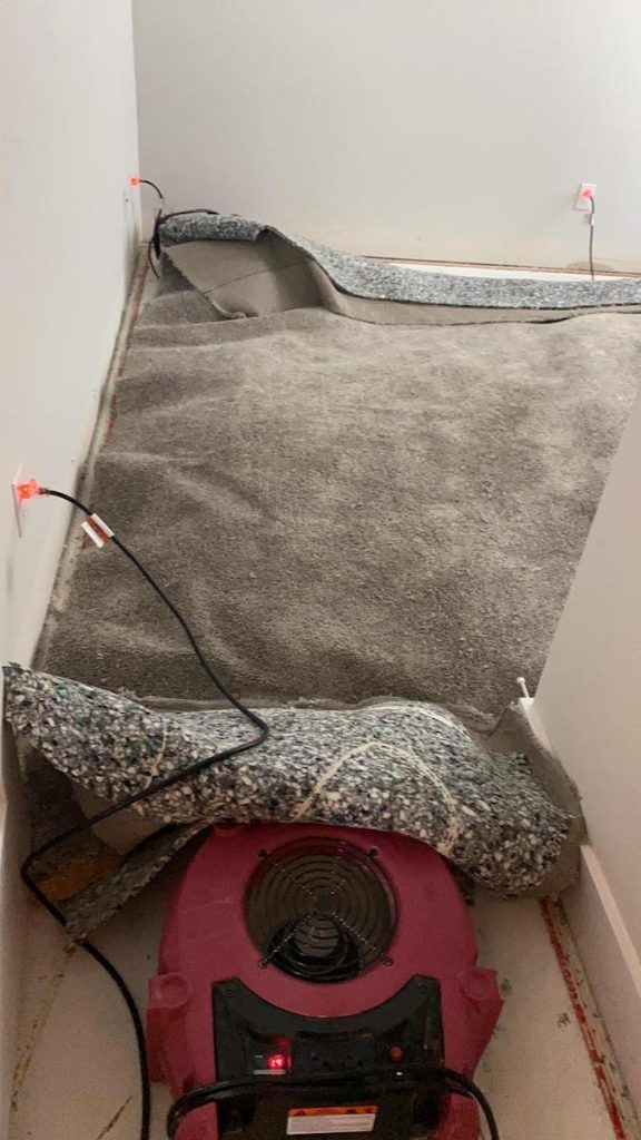 Most of our team was in Louisiana at the time of the call, helping out with the floods they were suffering from. Nonetheless, our Lead Technician, Audra, began the restoration all by her lonesome. She extracted the water and set up equipment for the first few hours until 8:30 am, when our franchise owner, U.L., arrived after driving through the night from Louisiana with reinforcements to help out.