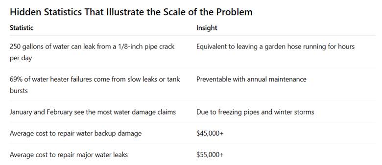 Together, these factors explain why water damage statistics continue to show a steady rise in both the frequency and cost of claims nationwide.