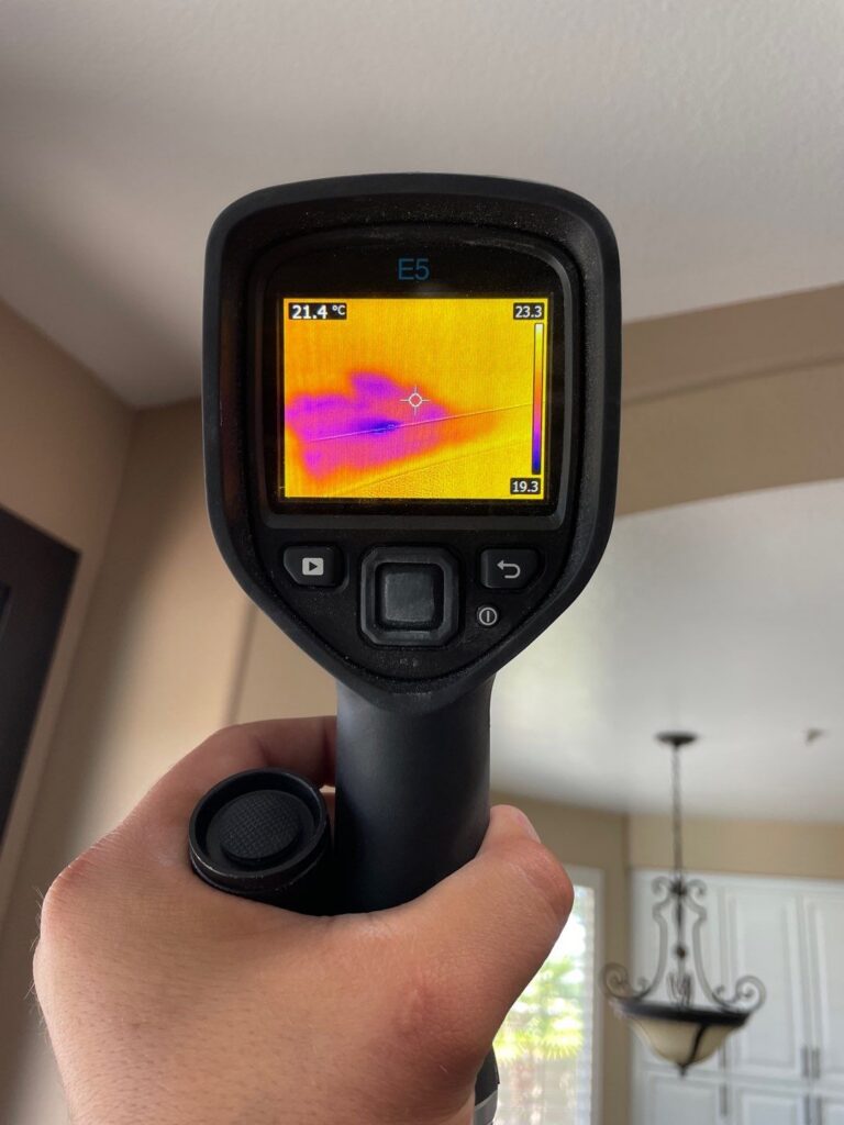 At the residence, our experienced technicians discovered a hidden water leak from the upstairs toilet. The leak was so tiny that it could not be seen with the naked human eye.