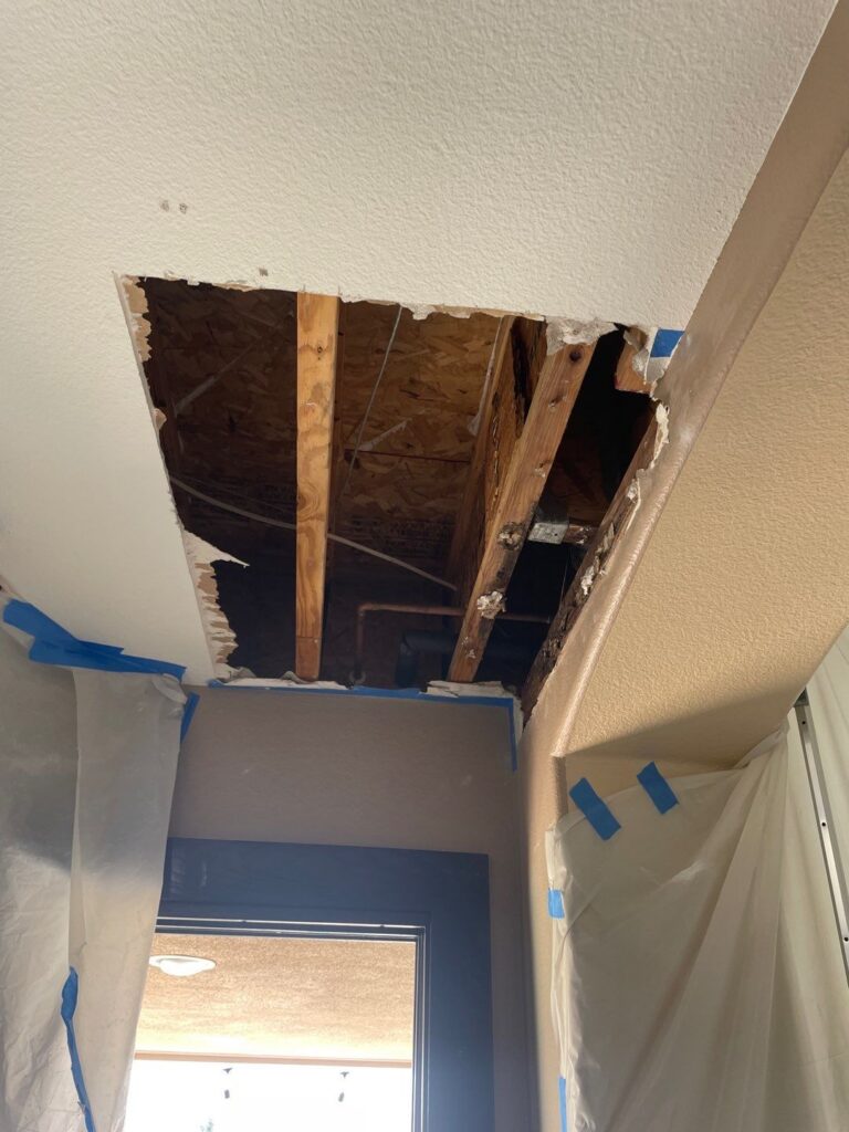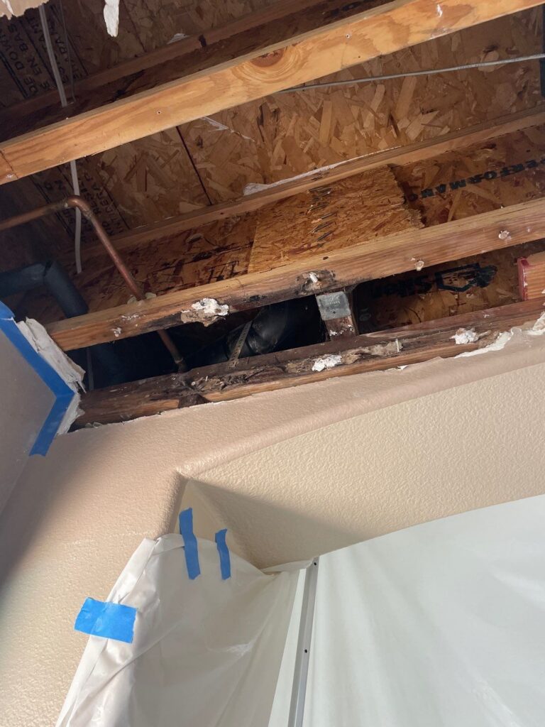 Once the mold remediation was through, we referred the client to a trusted partner, Daniel Cordova Plumbing, to repair the water leak. After their plumber mended the leak, we closed and repainted the wall.