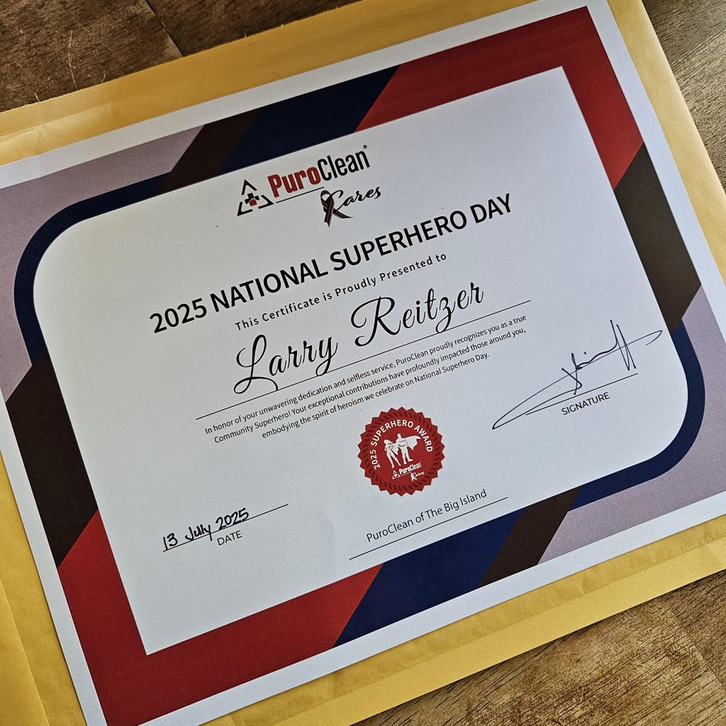 🎭 PuroClean of The Big Island Honors Sitcom Legend Larry Reitzer as 2025 Superhero Award Recipient