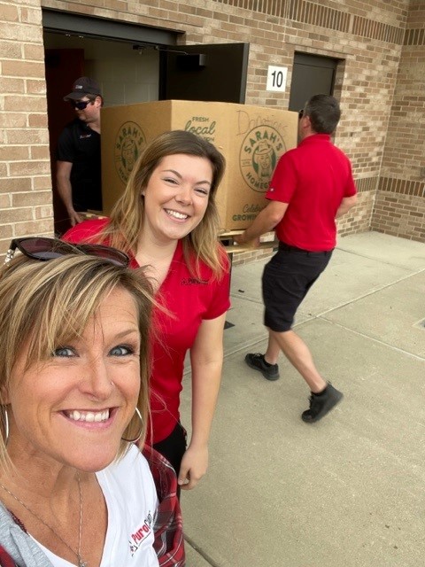 The Wyandotte students eagerly filled these containers with donations — a simple yet powerful act of kindness that exemplifies Lafayette’s caring spirit. Marketing manager Jessica Fishero ensured everything ran smoothly and couldn’t resist capturing the moment as our team helped organize the deliveries.