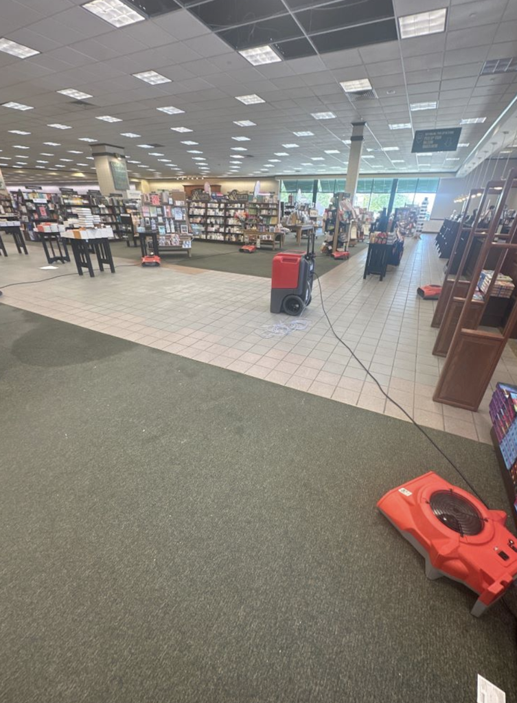 PuroClean of Lafayette performing water remediation services at a Barnes and Noble.