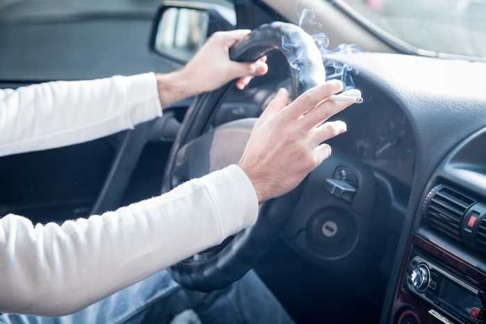 The very first thing to do if you plan to remove the smoke smell from the inside of your car is to stop whatever is causing the smell. Simple enough. This means if the odor is being driven by smoking tobacco or cannabis*, you will need to find a different spot to smoke. Likewise, clean up and remove any cigarette butts or ash, especially off of leather car seats and floor mats.