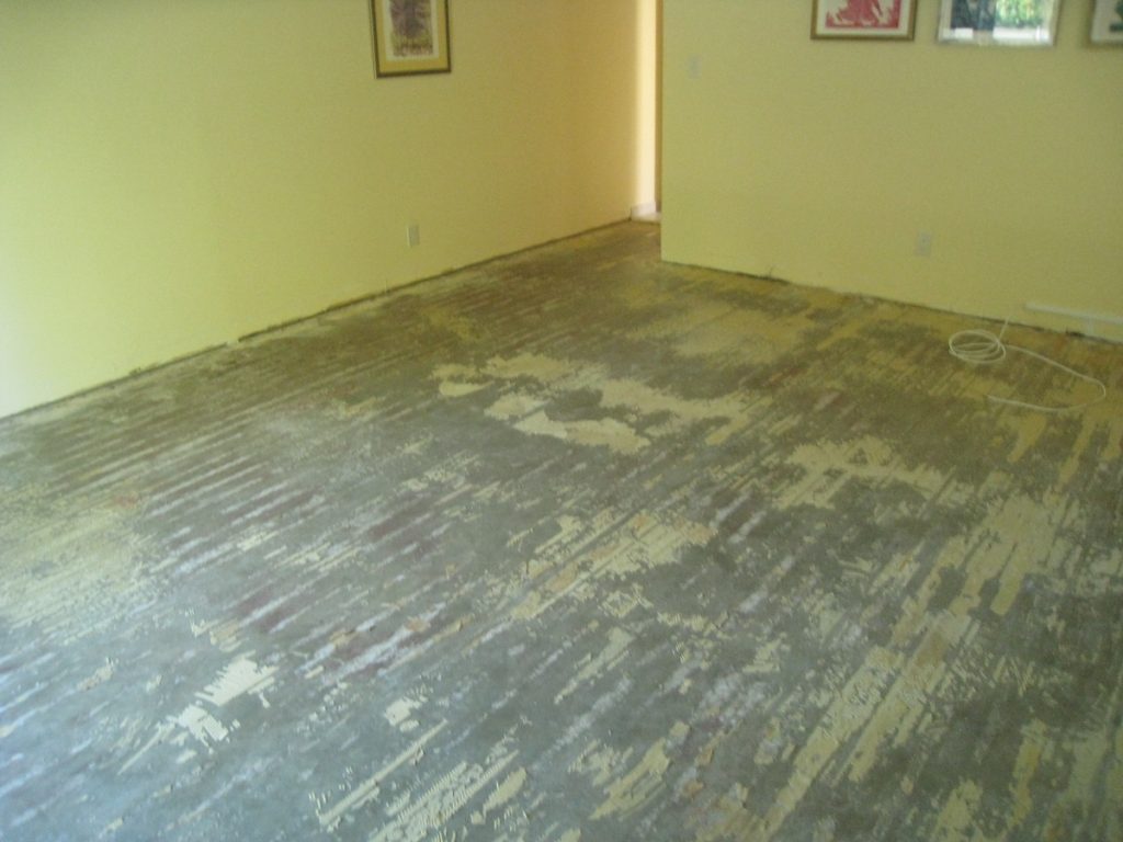 Next, came the ‘tough’ part: demolition. We needed to access and repair the source of the moisture beneath the hardwood floors. However, the typical demolition process encountered a challenge when we discovered the wood was actually glued to the concrete beneath. While not impossible, it did add an unexpected wrinkle.