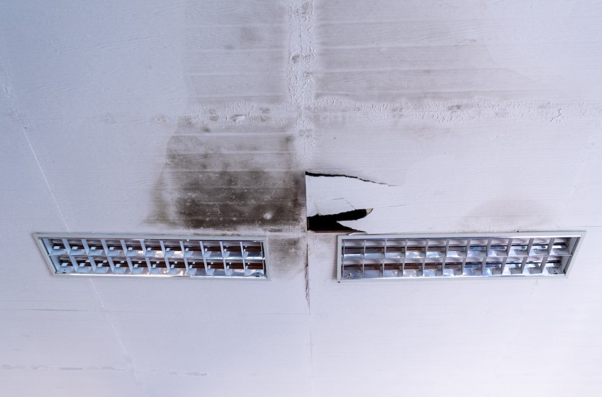 HVAC systems produce condensation, which should be drained away via a condensate line. If this line becomes clogged, water can back up and overflow—causing ceiling damage and mold growth. Use a float switch or water alarm and inspect the drain line to prevent water damage remediation costs.