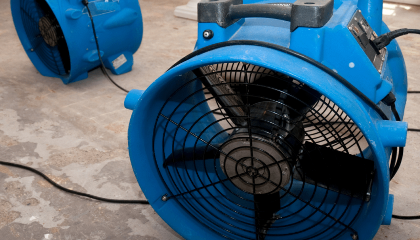 Air movers circulate air and dehumidifiers remove moisture from floors, walls, and furniture.