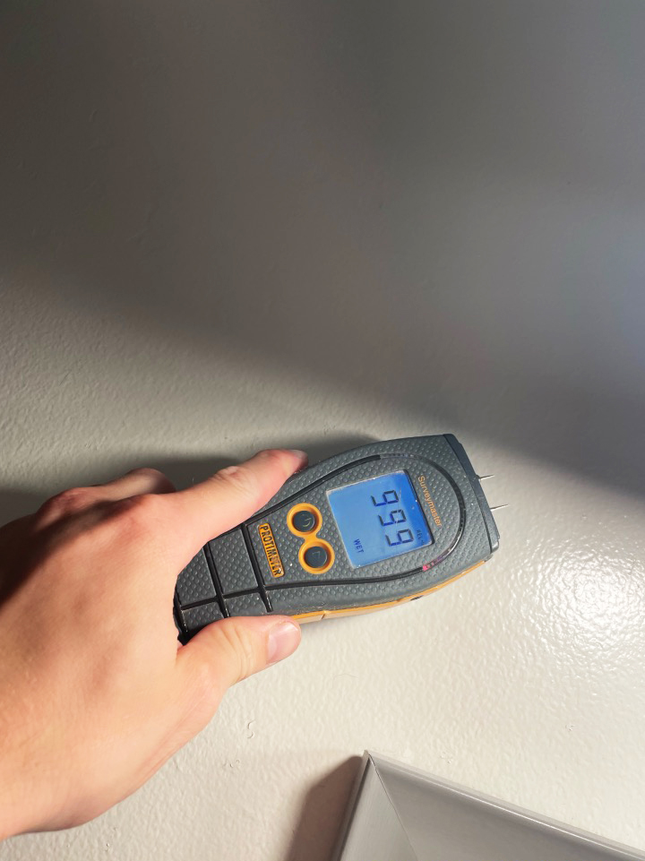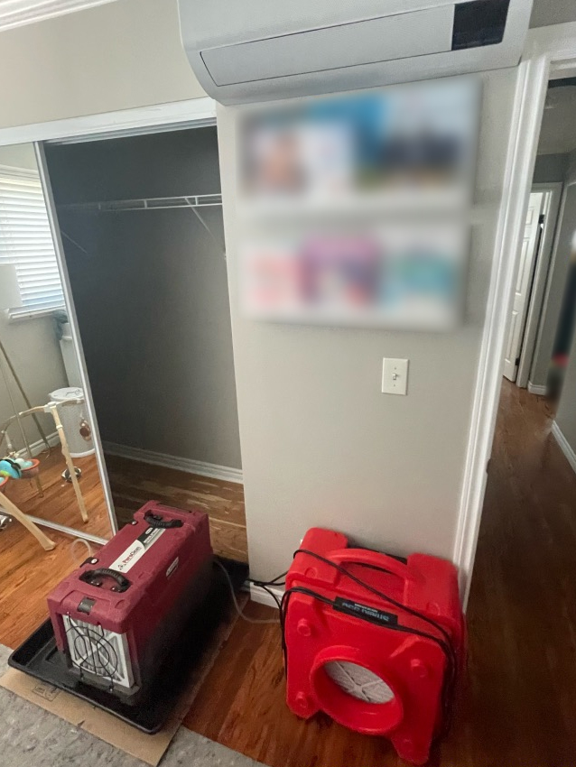 Upon receiving the call, Ryan and his team conducted a detailed inspection to assess the extent of the damage. The bathroom, bedroom, and hallway showed significant water damage and visible mold growth, necessitating urgent action. To contain the damage, we erected plastic barriers around these areas, effectively isolating them from the rest of the unit to prevent the spread of mold spores and further water damage.