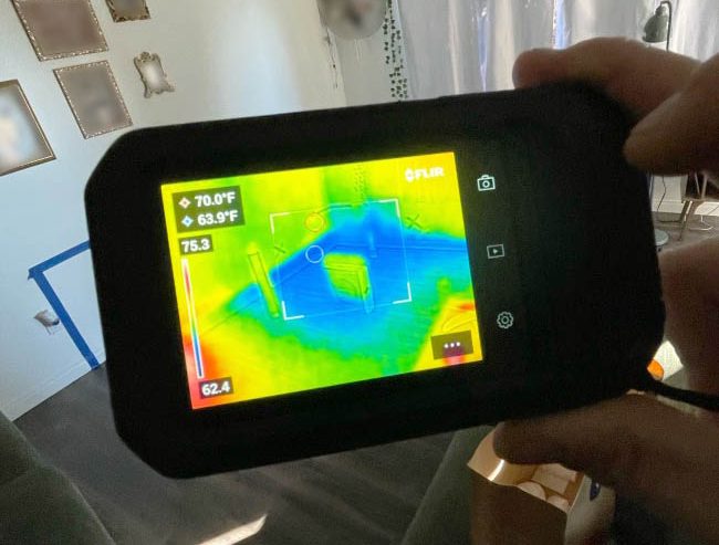 Upon arrival, the team conducted a thorough inspection and found moderate moisture damage in a corner of the living room. The affected materials included drywall, insulation, and laminate flooring. To prevent further damage, we quickly deployed industrial-grade drying equipment, placing one dehumidifier and four air movers in strategic locations.