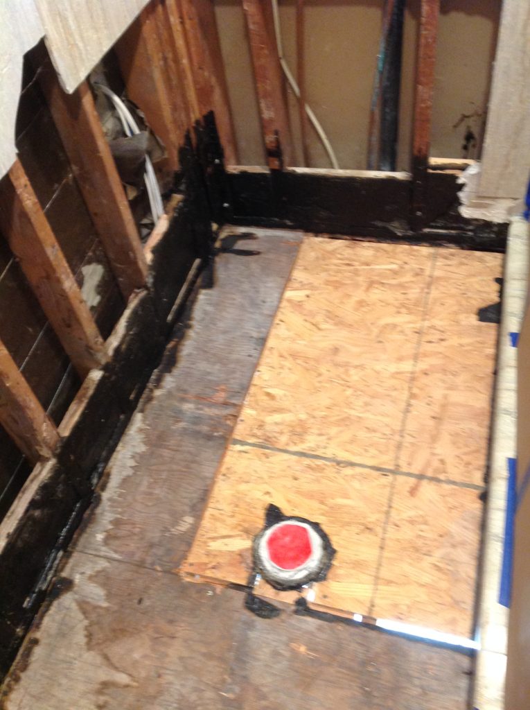 The team also removed the shower pan in the bathroom along with the shower tiles to properly dry the structure. Drying was achieved by placing air movers (fans) and dehumidifiers throughout the affected areas.