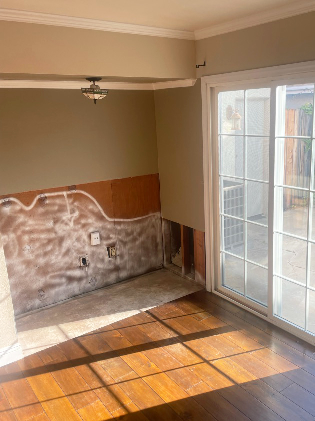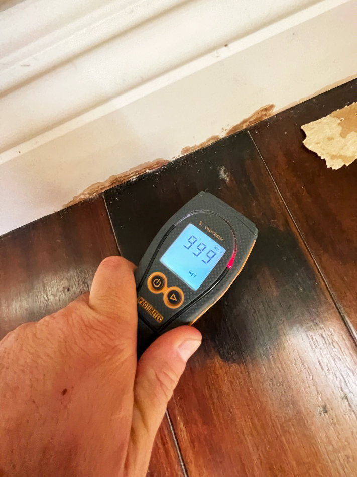 Upon arrival, Daniel’s team conducted a thorough inspection, discovering extensive damage. The drywall and insulation in both the garage and bedroom were heavily affected, and the bedroom’s hardwood flooring was also damaged. Recognizing the urgency, the team swiftly moved to mitigate further damage.