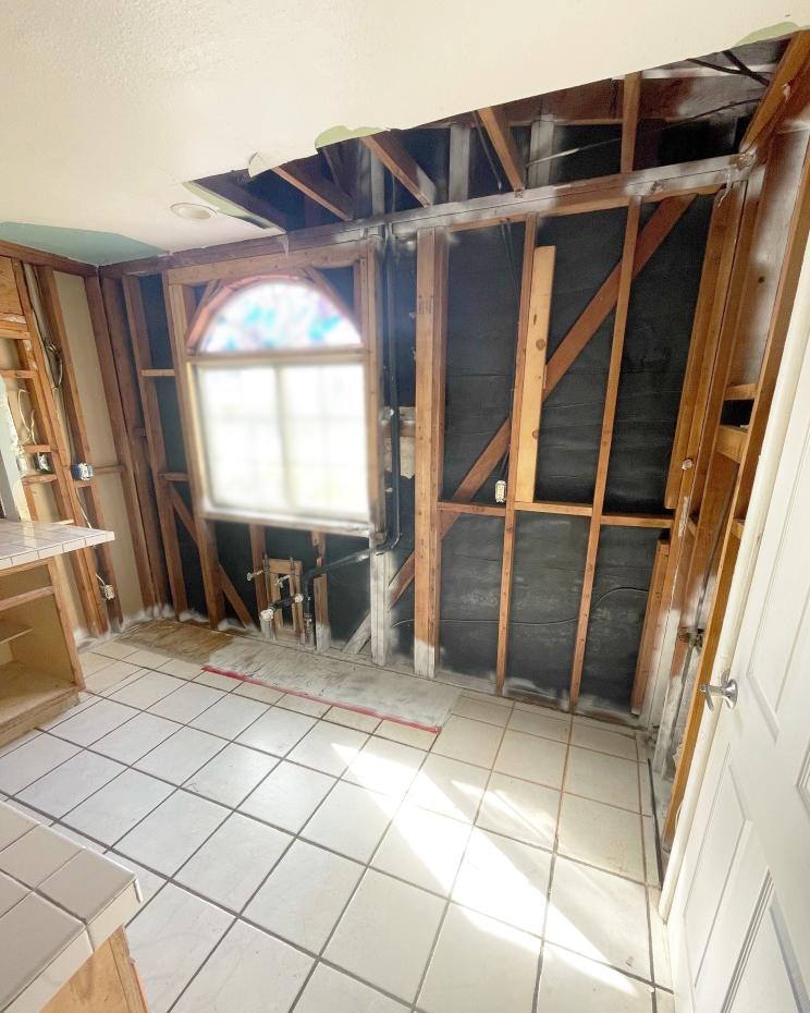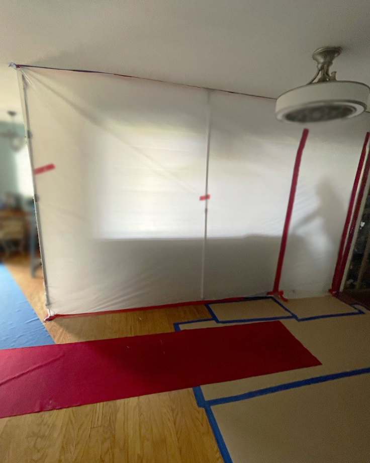 Every nail and screw from the wood framing was extracted, and all surfaces were HEPA vacuumed to remove dust and debris.