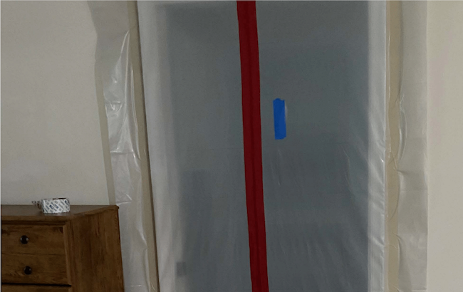 The remediation began with the containment of the water in the bedroom. We installed dehumidifiers and air-movers in the room to remove the moisture from the air. Then, we discovered a water leak from the inside of the wall between the AC closet and the main bedroom. This was clearly the cause of the mold we could see on both sides of the wall.