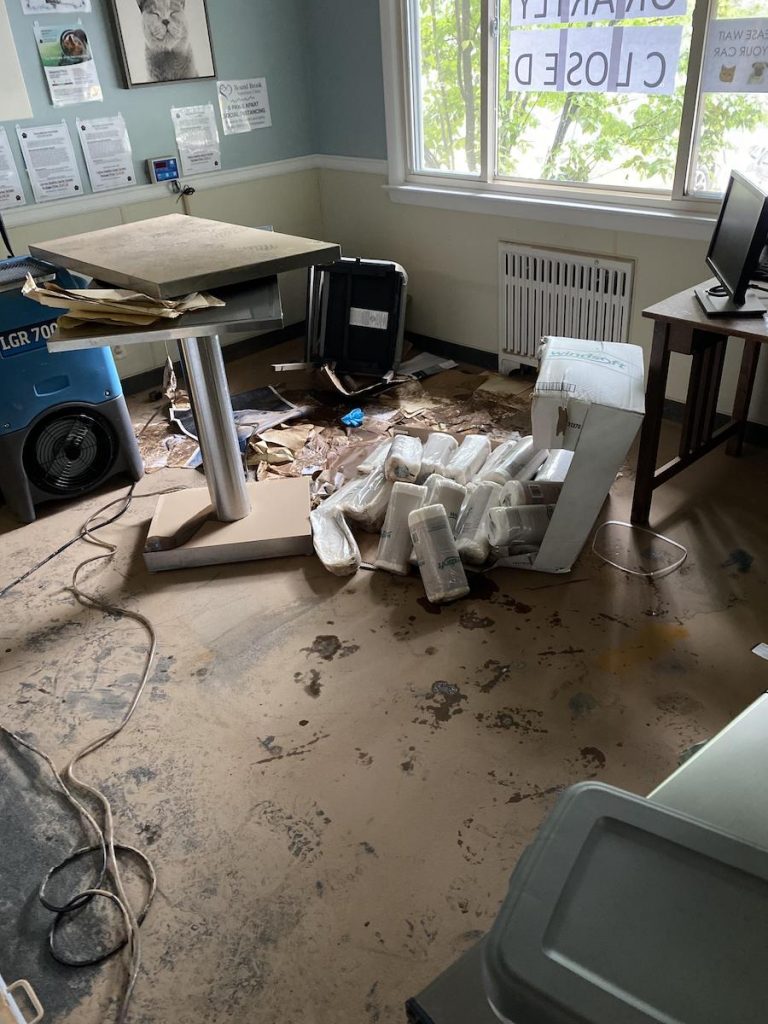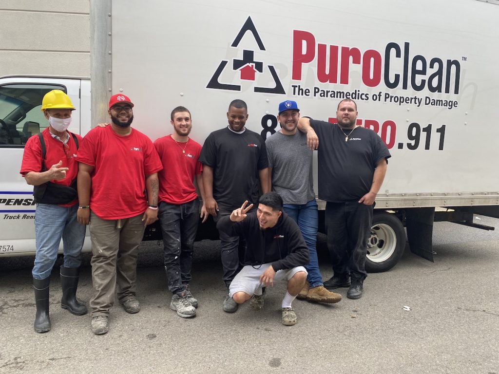 Our team of nine completed various jobs across New Jersey and New York. Among them, we worked with Signal Restoration, PuroClean’s large loss partners, to mitigate water damage at two national department stores. The hurricane recovery work continued at a veterinary clinic and a large condo building. Both of these also required water mitigation work. The condo building was especially bad because of its location. A hill behind the building caused a mudslide, impacting the first two floors. Over 20 units needed a full demo.