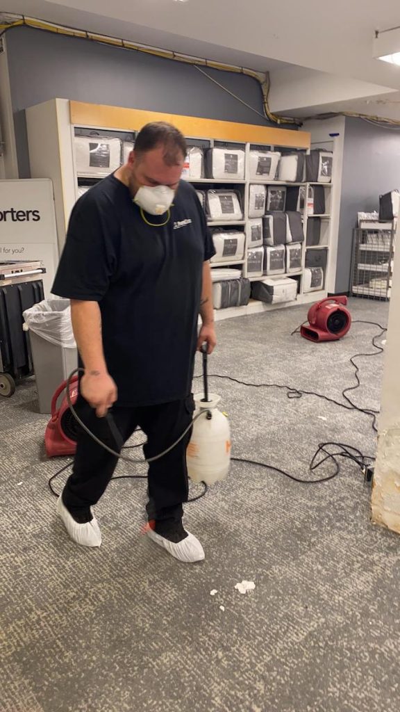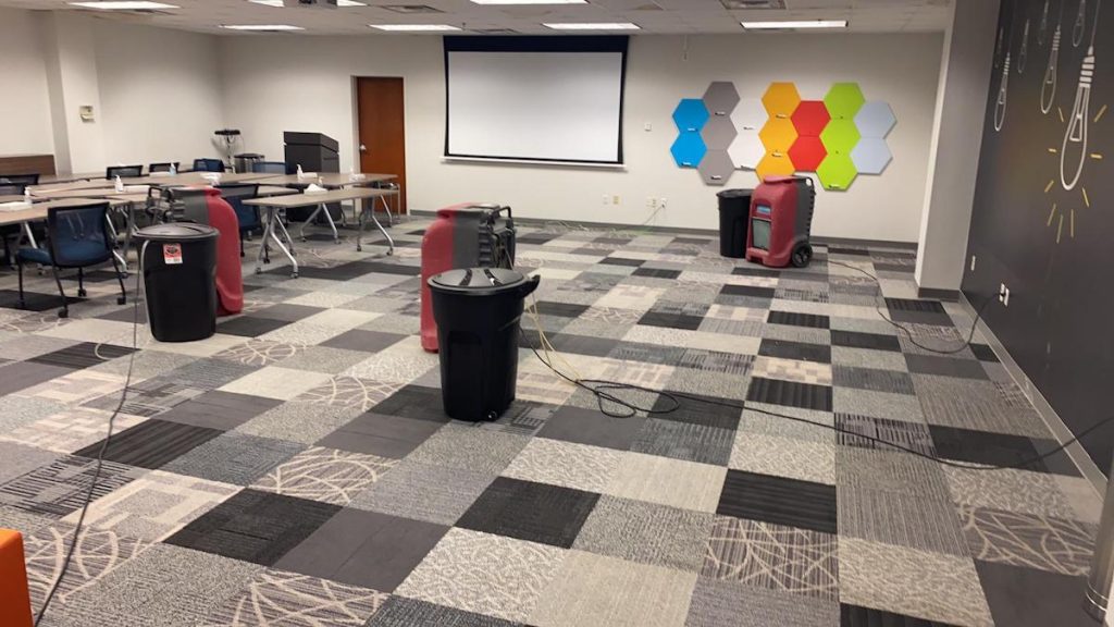 The biggest project our team completed was at a large corporate training facility in Englewood, New Jersey. The building experienced water loss, affecting the entire 75,000 square foot complex. This amount of water damage required a lot of equipment. We set up 150 dehumidifiers to dry the area. A dehumidifier, or air mover, is a piece of equipment that expedites the drying process. However, even with 150 of them set up around the building, it still took over three weeks to extract all the water.